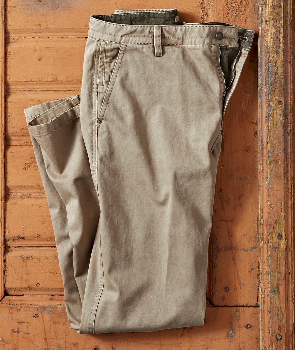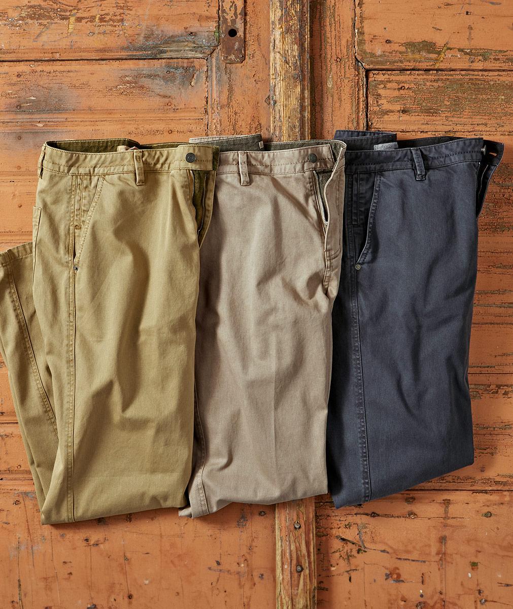 Your all-purpose, all-season twill pants with subtle details to elevate. Washed down to vintage softness and an easy drape, they have pick-stitch trim throughout, a stealth vertical coin pocket at the right front slash pocket, and chambray trim at the inner waistband. Clean, flat front and two drop-in back pockets. Medium rise. Zip fly.