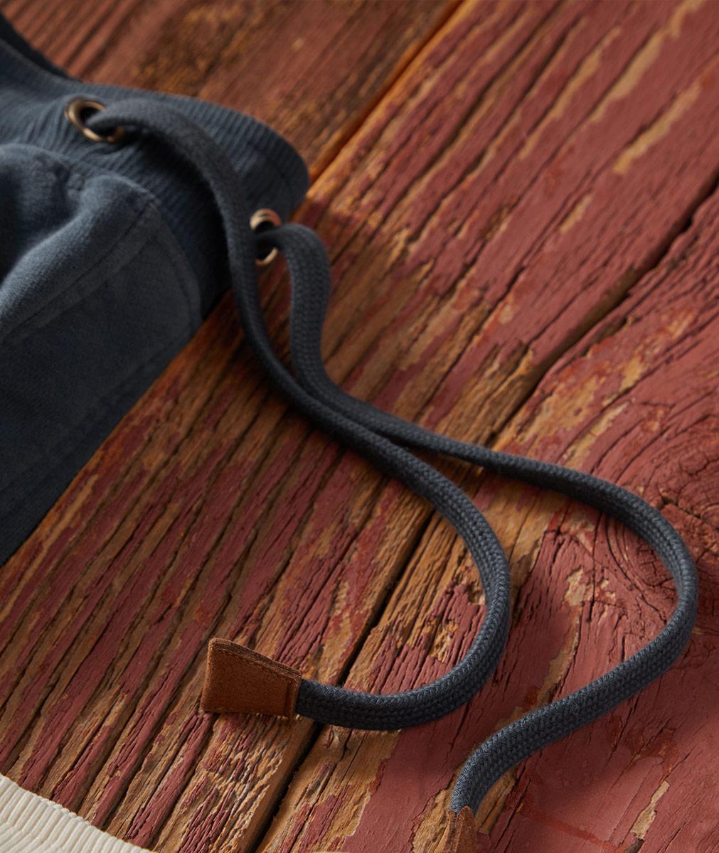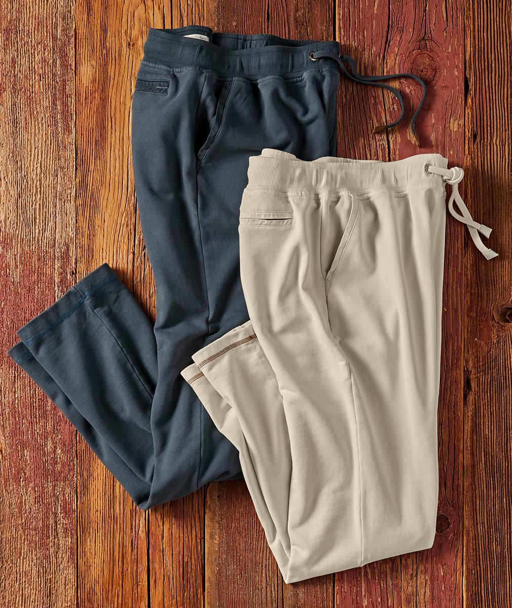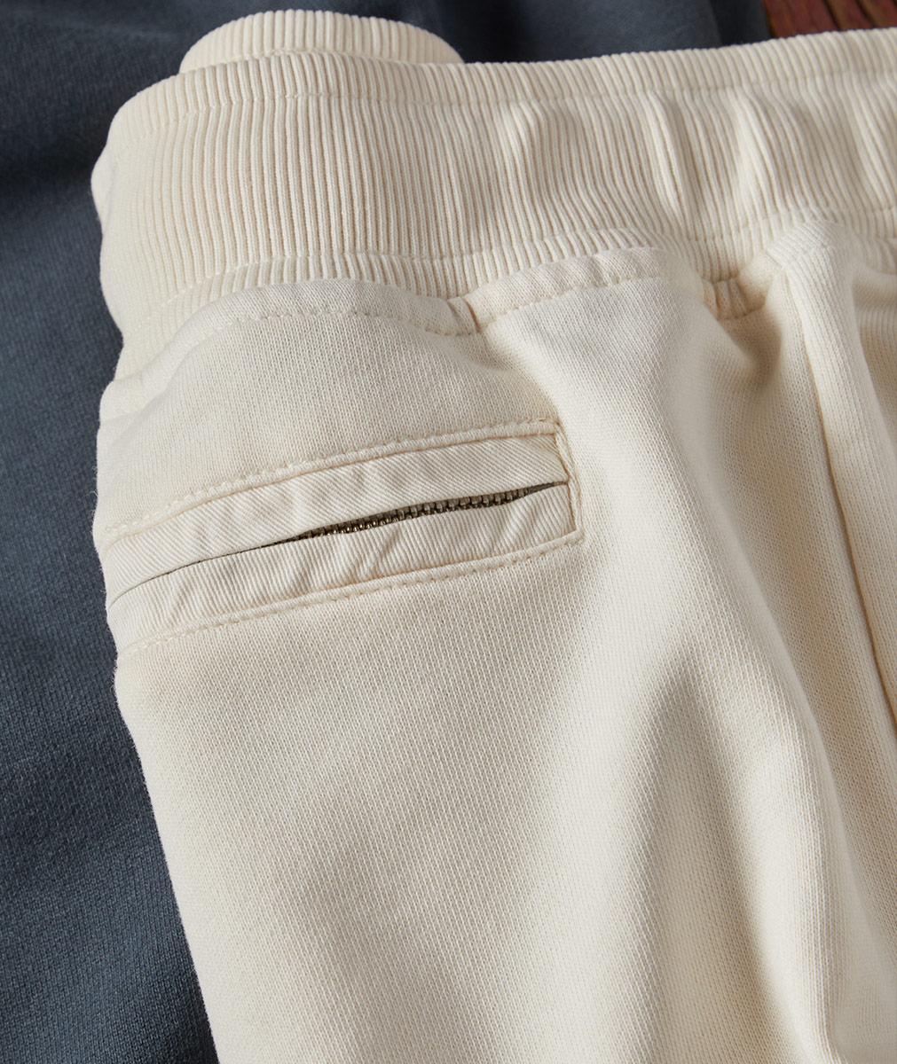 The sweats with that extra special something. Made of comfy, substantial French terry with a velvety peached finish, the front pockets are trimmed with woven fabric for a refined look. We especially love the back zippered welt pocket for securing small essentials. Rib-knit trimmed elastic waist and open leg. Drawcord with faux suede trim.