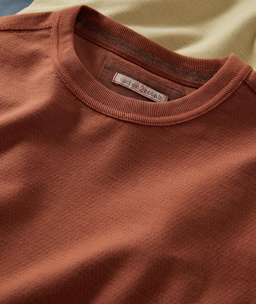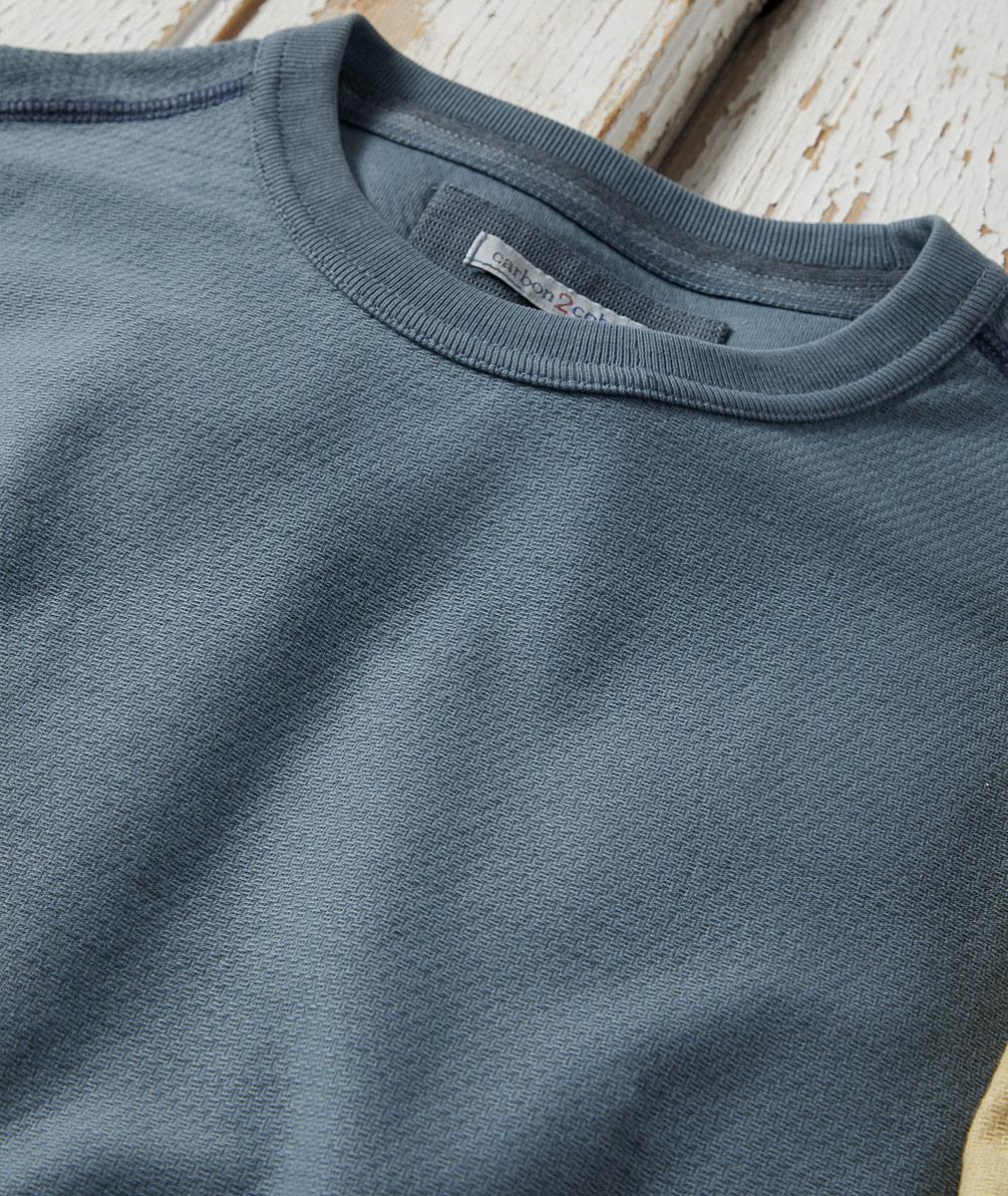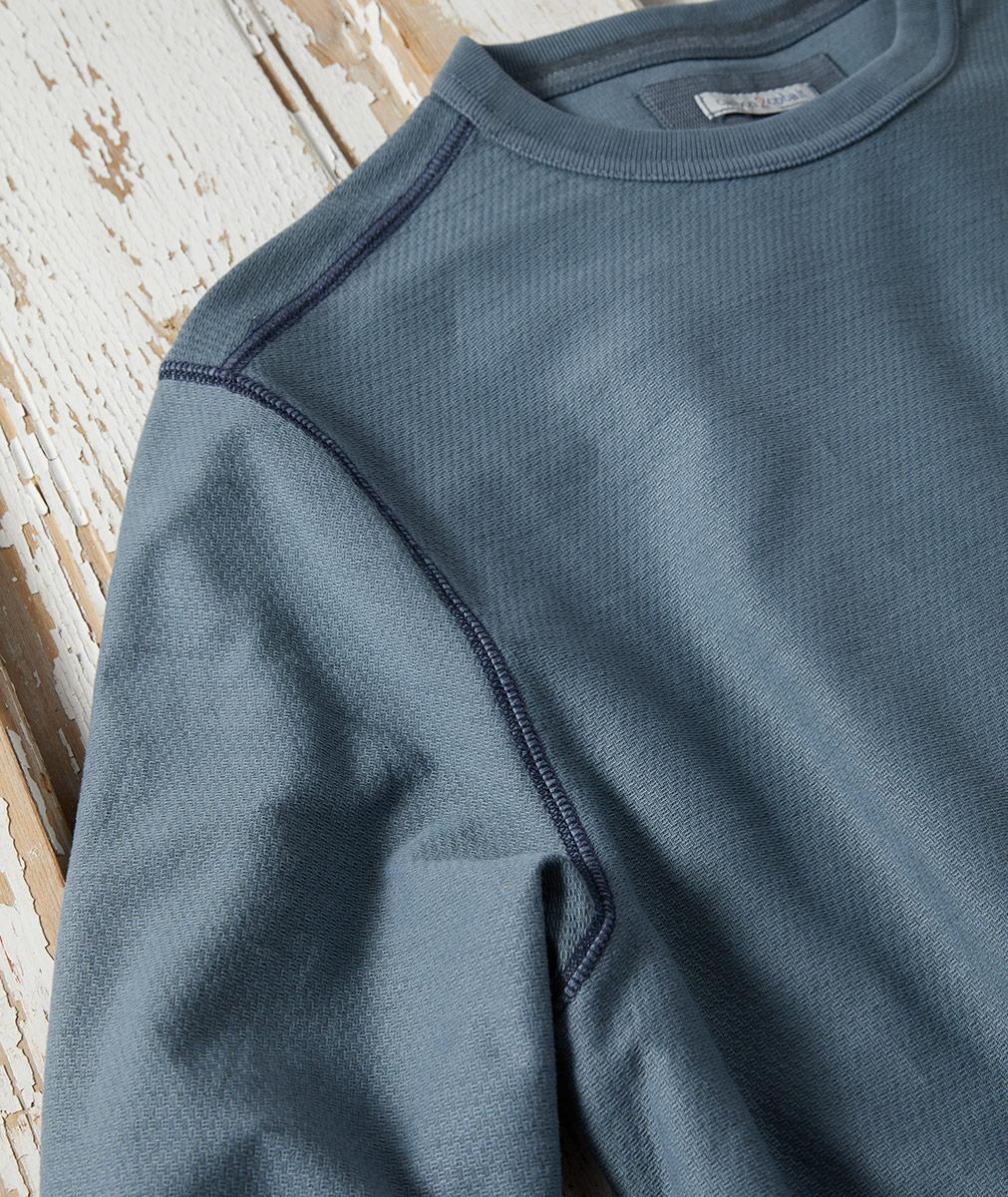 Hearty in feel and refined in texture, this is the elevated long-sleeve tee you didn't know you needed. The jacquard knit gives it a more structured drape, and the wash gives it a touch of vintage patina. Cover stitch throughout. Rib knit crewneck.
