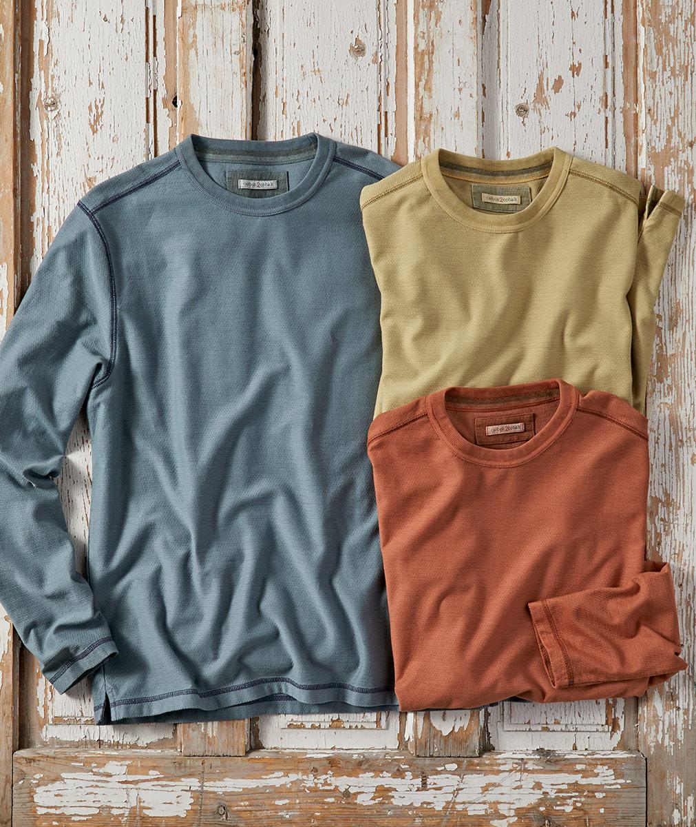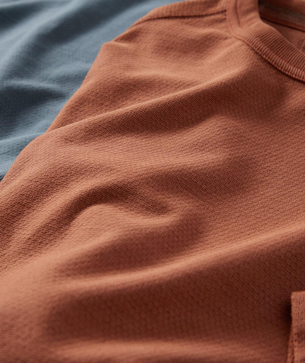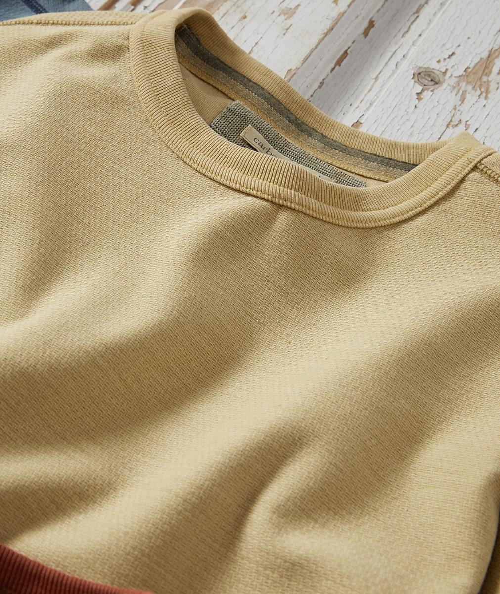 Hearty in feel and refined in texture, this is the elevated long-sleeve tee you didn't know you needed. The jacquard knit gives it a more structured drape, and the wash gives it a touch of vintage patina. Cover stitch throughout. Rib knit crewneck.
