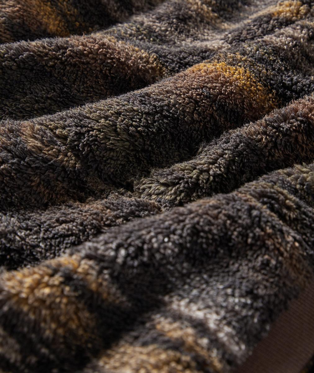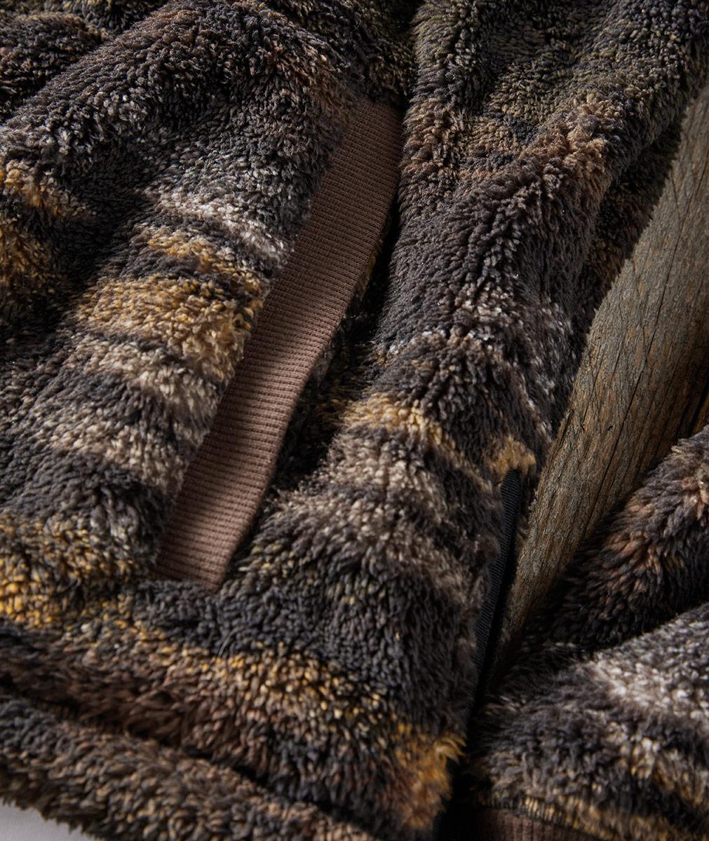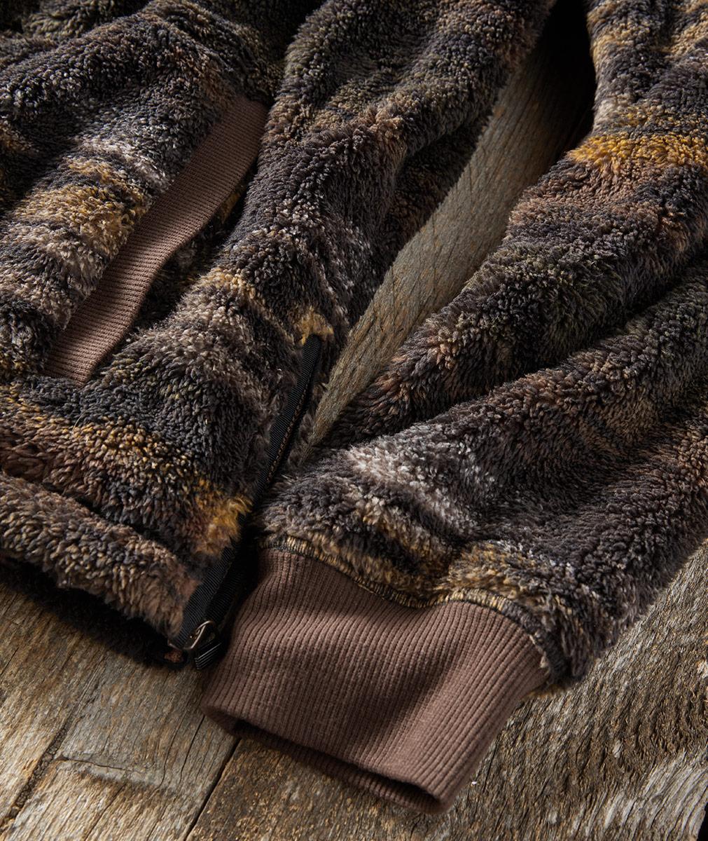 An artistic take on fleece. Featuring a painterly printed motif in rich tones of a desert sunrise, this quarter-zip offers cozy warmth in both look and feel. Jersey-lined kangaroo pocket.