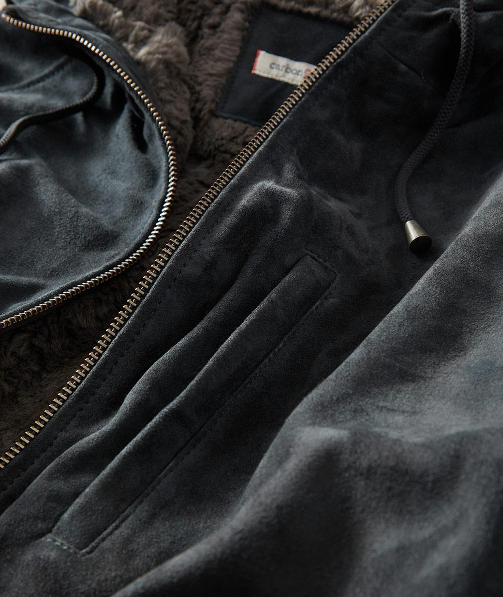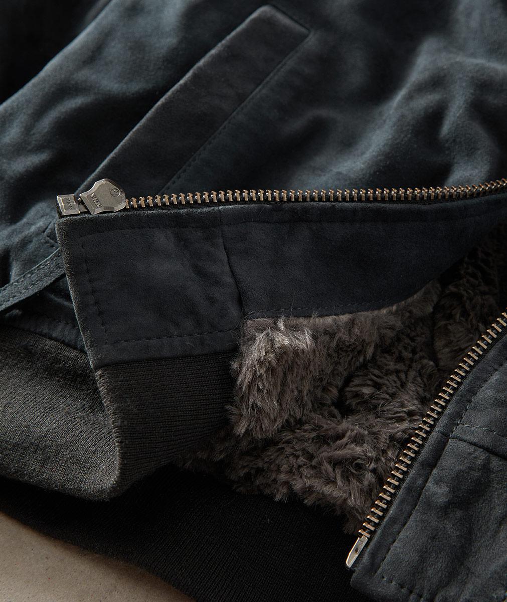 Made of the most luxurious lamb suede with an insanely soft faux fur body and hood lining, this jacket is a sensory experience. Hearty and handsome, it features side-entry handwarmer pockets and a cool hidden zipper pocket along the inner zip placket. Drawcord with antiqued metal endcaps.