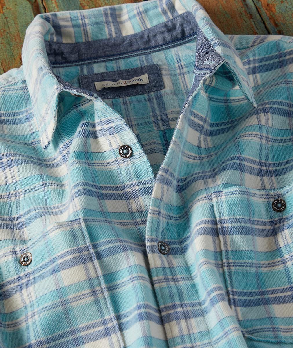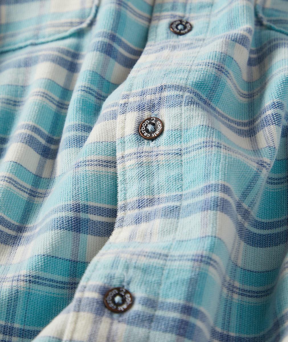In super-soft, fine-wale cord and refreshing colors of sea and sky, this is the shirt of the season. Cozy-yet-lightweight, it's trimmed with chambray at the inner collar, placket, and outer locker loop. Two button-through chest pockets. Brushed metal buttons.