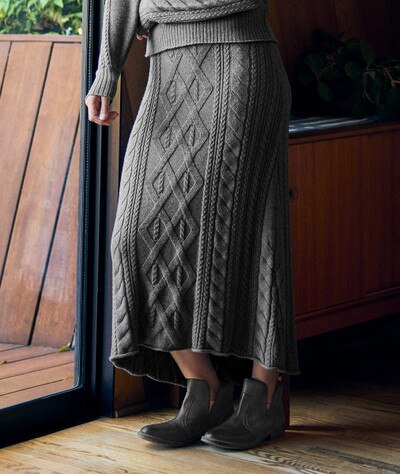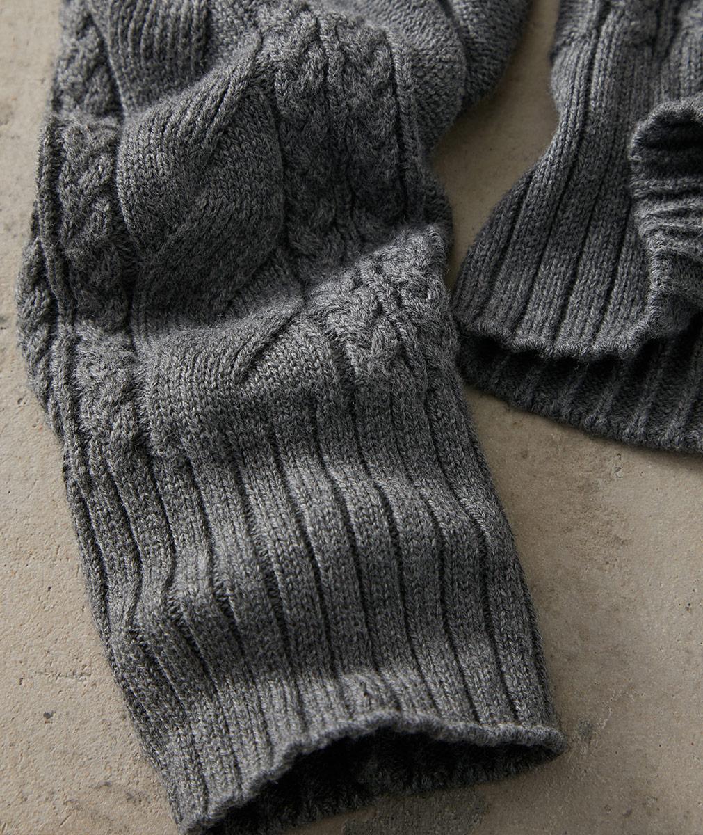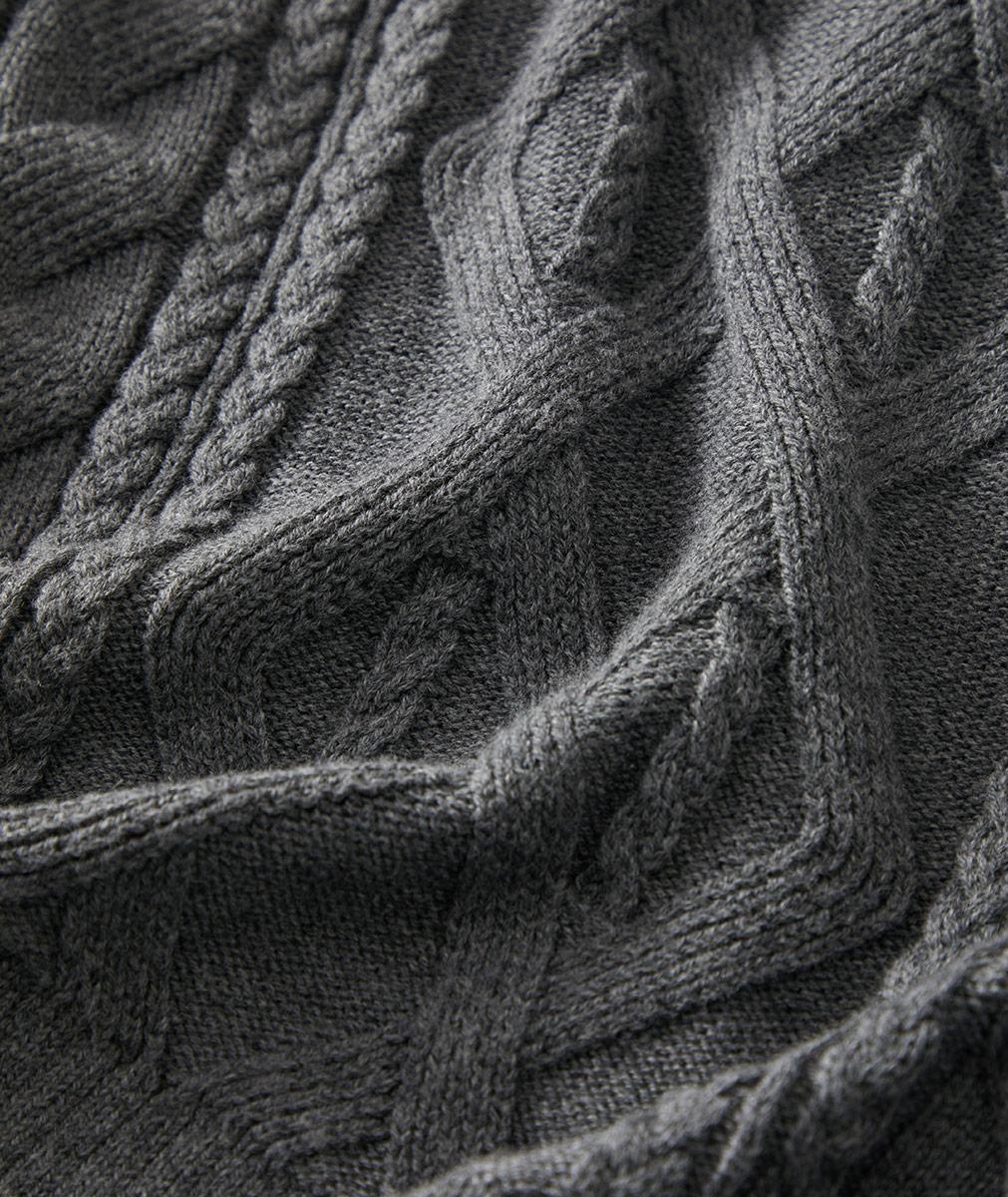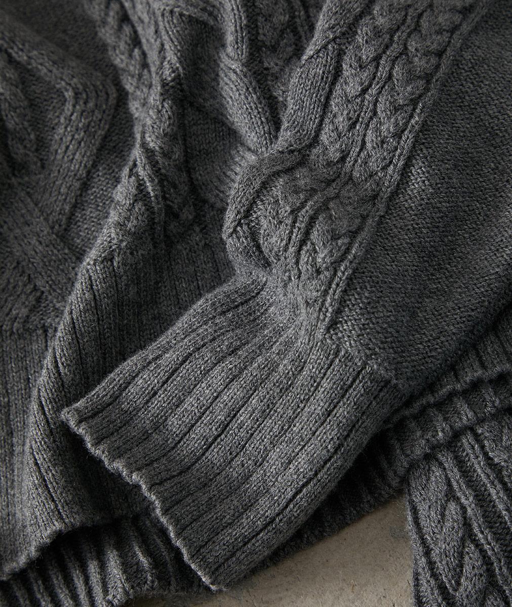 Embracing the heritage cable knit sweater, our version is crafted from a lighter-weight knit blend with a velvety, lofty feel. Featuring traditional motifs both front and back, we styled the under-sleeve with a jersey stitch to sleek the silhouette. Rib-knit mock neck, cuffs, and hem.