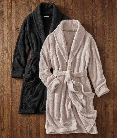 What to pack for your staycation: this luxuriously soft and substantial lounge set. Made of lofty half-pile fleece, it includes both a rib knit-trimmed crewneck top and a pair of pull-on drawstring bottoms with a tapered, cuffed leg.