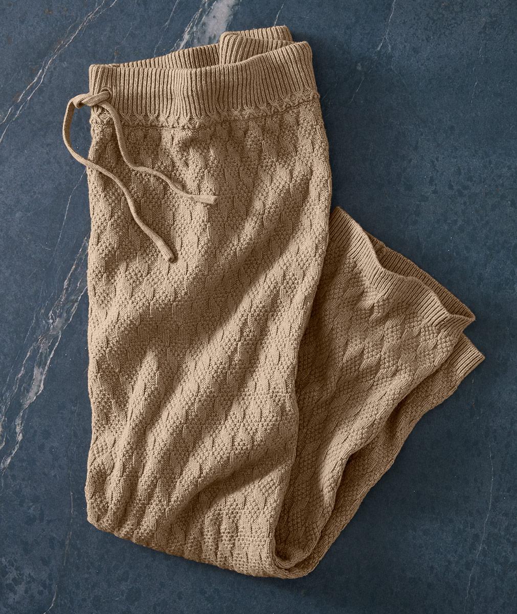 Just as comfy as sweatpants, these lounge pants effortlessly elevate. Made from a cozy blend of cotton and merino, we love the honeycomb stitch that gives them a rich texture. Rib-knit trimmed elastic waist and hem. Easy wide leg.