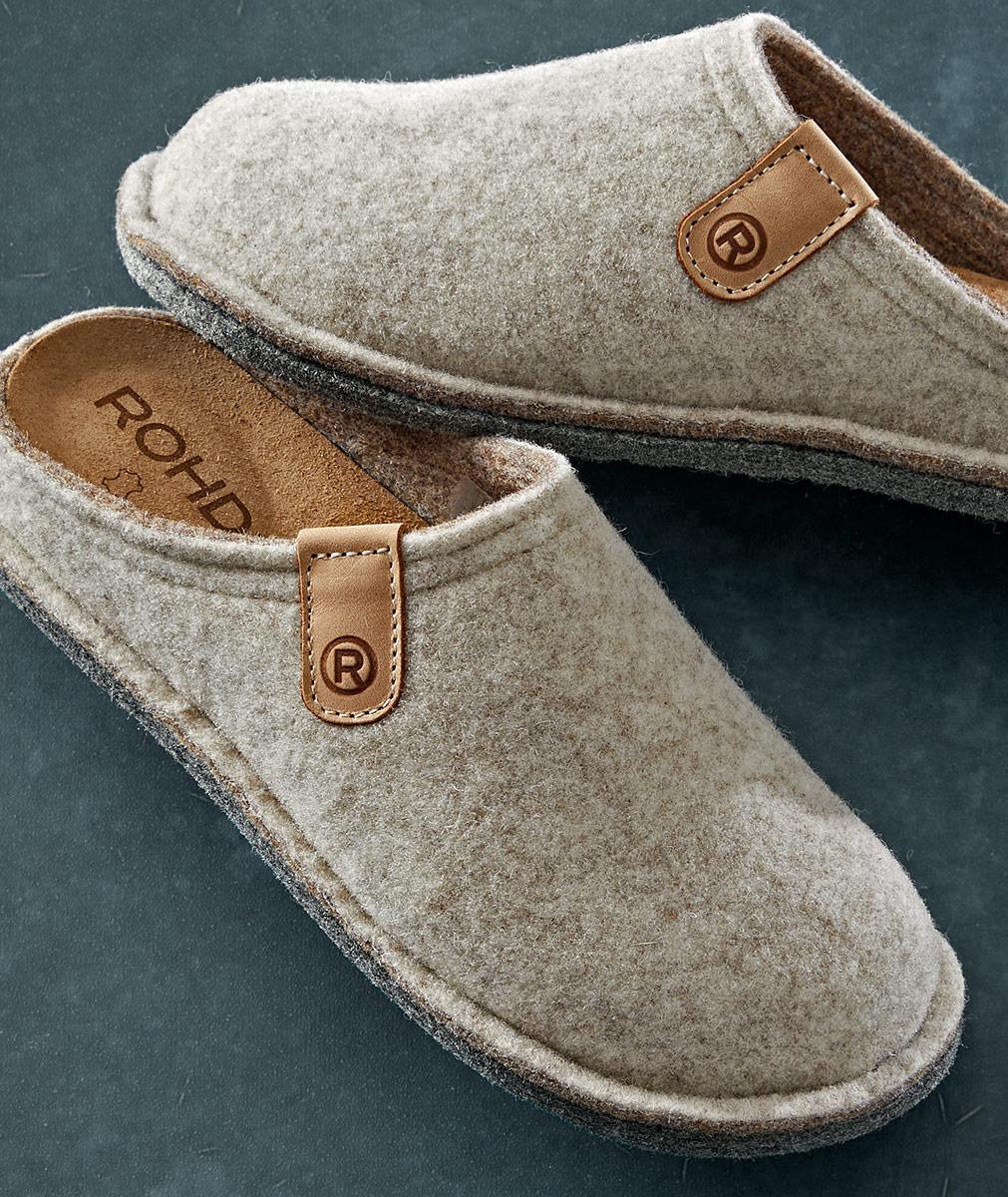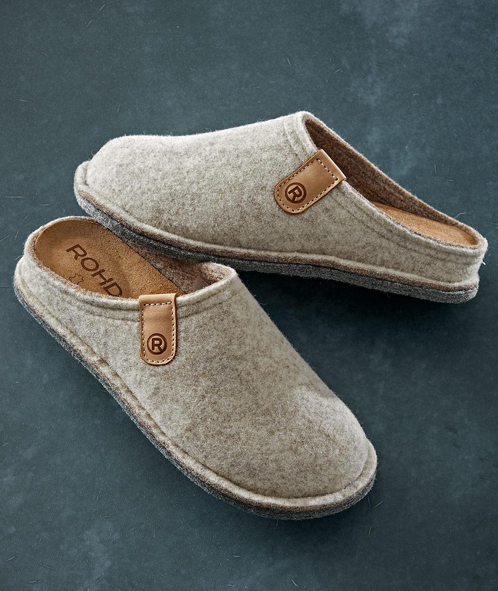 A European household staple, this classic felt slipper offers cozy comfort and functionality. Cushioned, removable, leather-lined insole. Felt outsole with rubber patch provides traction and a quiet step.
