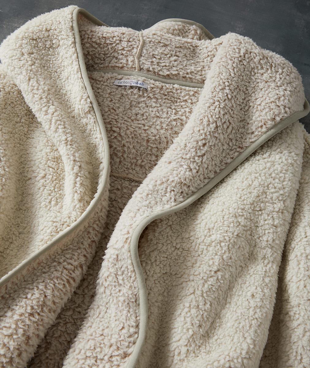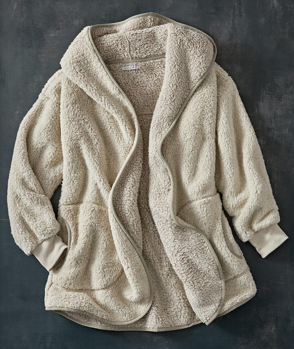 Cardigan or wearable blanket? No matter what you call it, it's a cozy experience made from the softest fleece imaginable. Lightweight and lushly soft, it features a generous hood and beautiful open silhouette. Side entry pockets. Rib-knit cuffs.