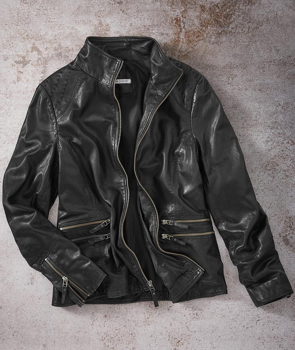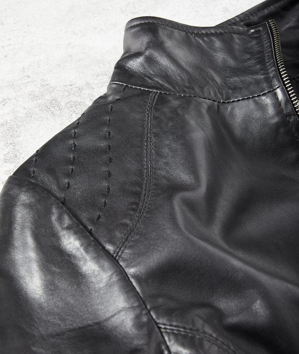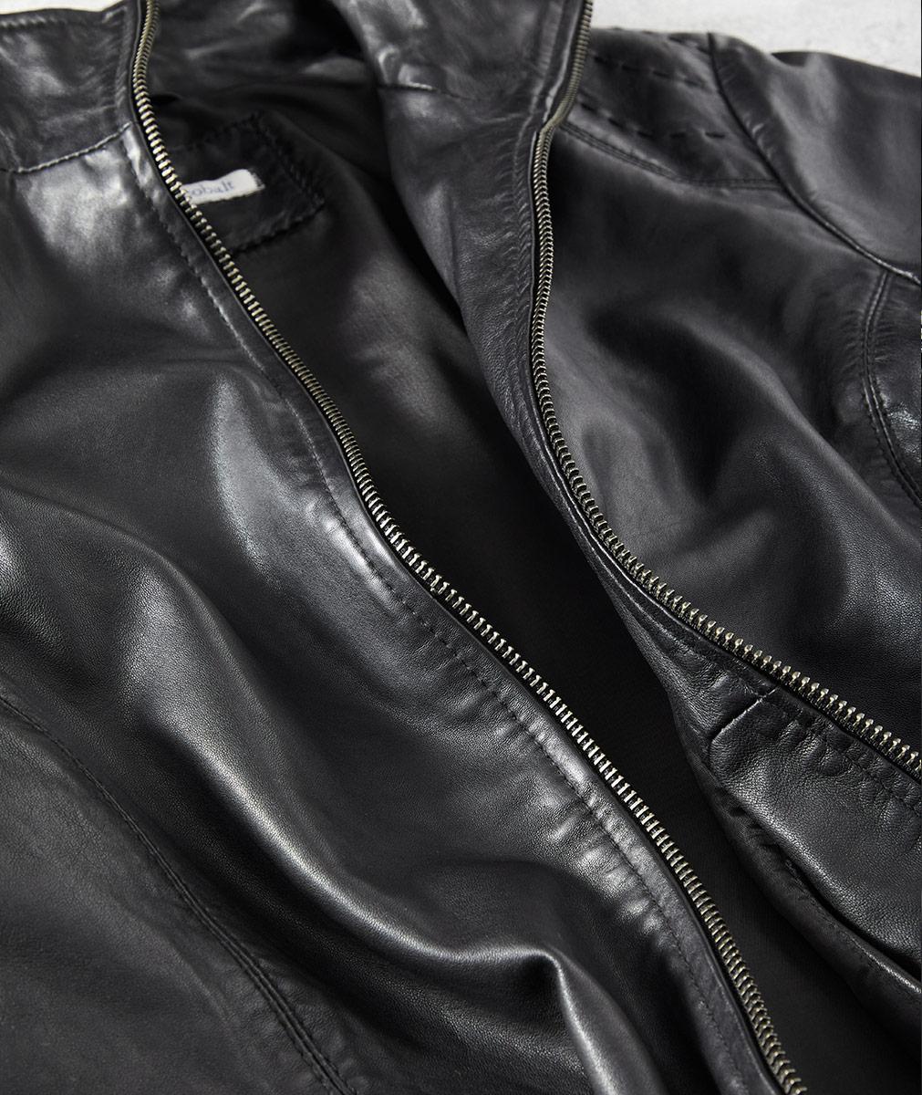 Made of buttery-soft lambskin with a satiny, ultra-luxe feel, this is the moto jacket, C2C-style. Featuring classic details such as a standup collar, zip front, and double zip hip pockets, as well as zippered cuffs, we added unique pick stitching along the shoulder and side panels.